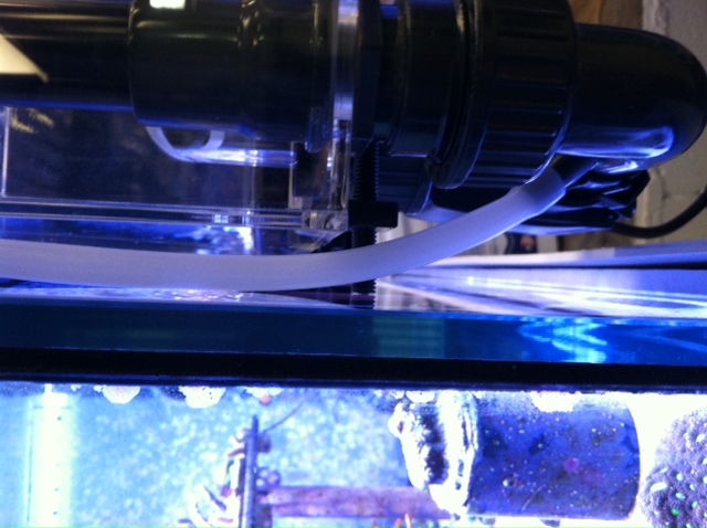 The plastic ring that secures the airline tube to the skimmer body is in a pretty stupid place. It routes the air tube up behind the tank and pinches it between the skimmer body and the glass. I even had the leveling screws loosened pretty far out and it was still pinching the tube.